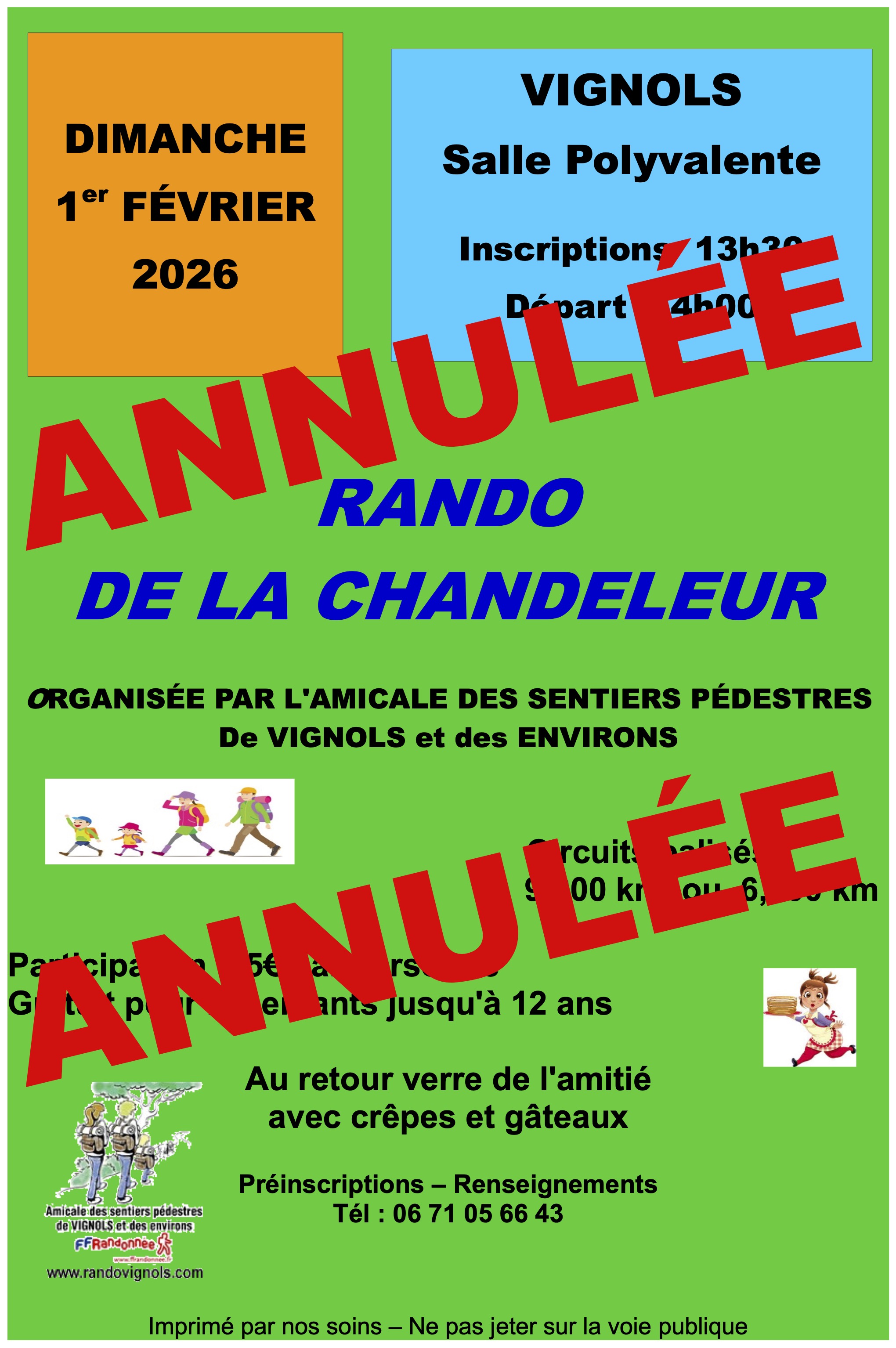 Nous avons décidé d'annuler la Rando de la Chandeleur dimanche 1er février 2026.